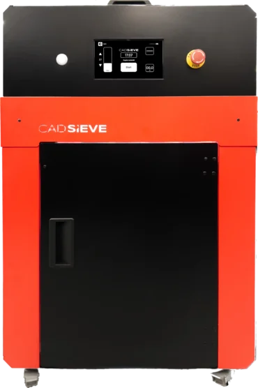 Díky rozměrům 930 × 570 × 500 mm a hmotnosti 45kg je CADSIEVE snadno přemístitelný a vhodný i do menších provozů. Jeho konstrukce umožňuje pohodlnou obsluhu bez nutnosti složité instalace nebo speciálního zázemí.